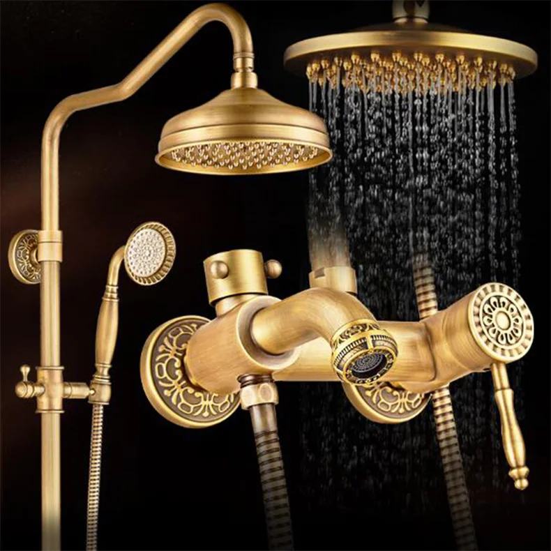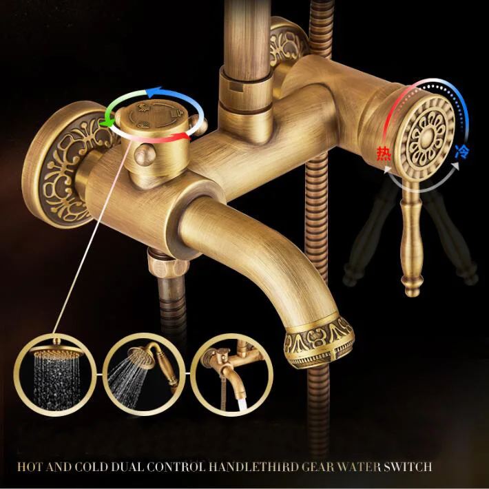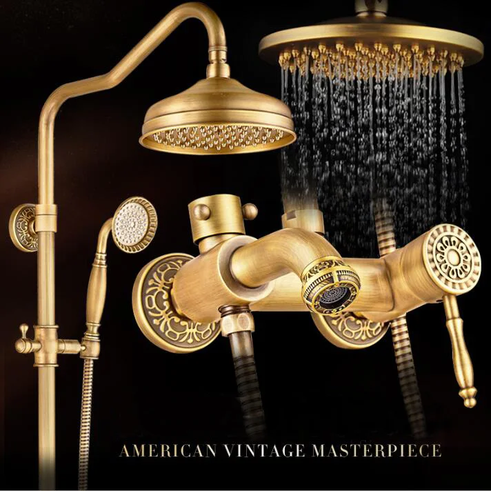 Product Name: New Luxury Antique Brass Carving Rainfall Shower Sets Faucet Mixer Tap Tub Faucet Brass Bath & Shower Faucet Set Bathtub Faucet