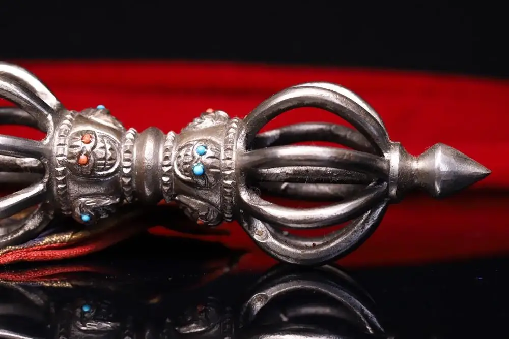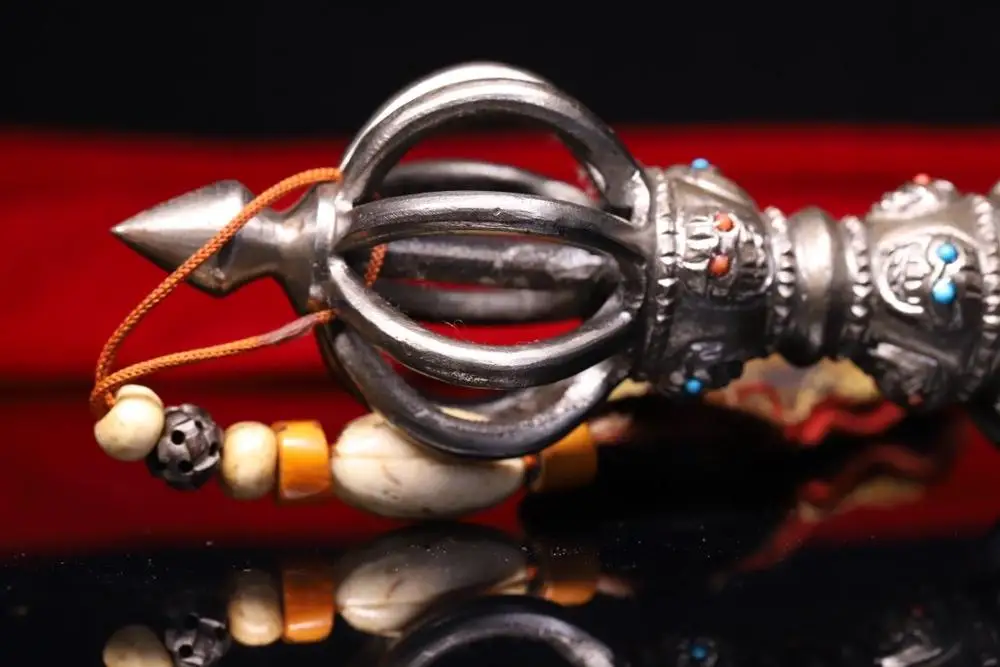 Product Name: wedding Decoration Tibetan Monastery Collection Tiantie Pure Hand-tapped Chisel Engraved Inlaid Old Gems Faqi Phurba Vajra