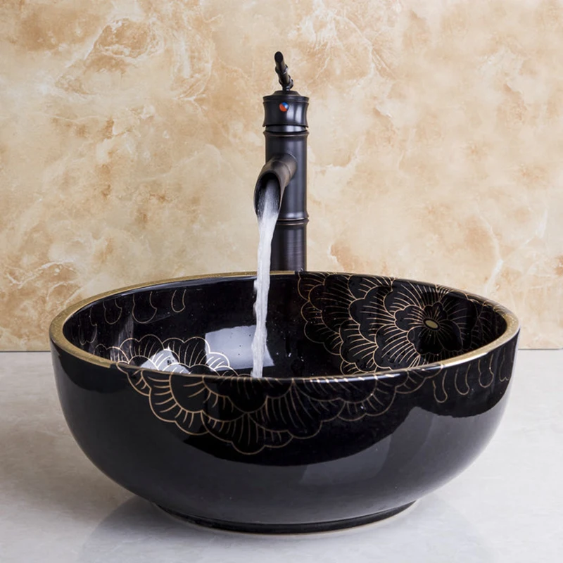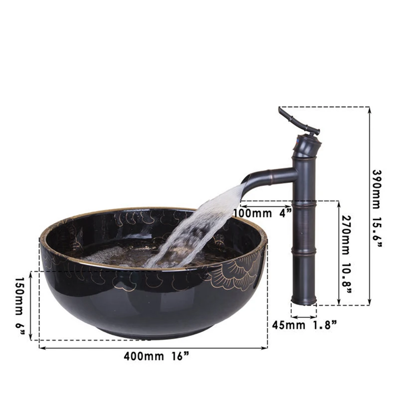 Product Name: YANKSMART Bamboo Design Faucet + Ceramic Lavatory Round Bathroom Sink Counter Top Washbasin Mixer Water Tap With Pop-up Drain