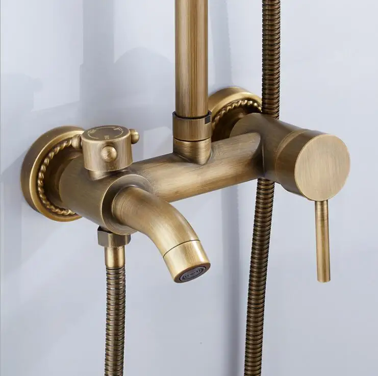 Special Offer Top Quality Luxury Special Antique Brass Rainfall Shower Set Faucet + Tub Mixer Tap + Hand Held Shower Bath And Shower Faucet Discount 28% Today!