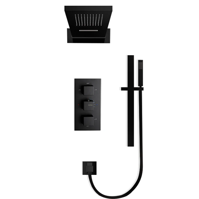 Product Name: Thermostatic Shower Faucet Matte Black Wall Mount Bathroom Faucet Set Rainfall Square Big Shower Head Bath Mixer Tap Chrome