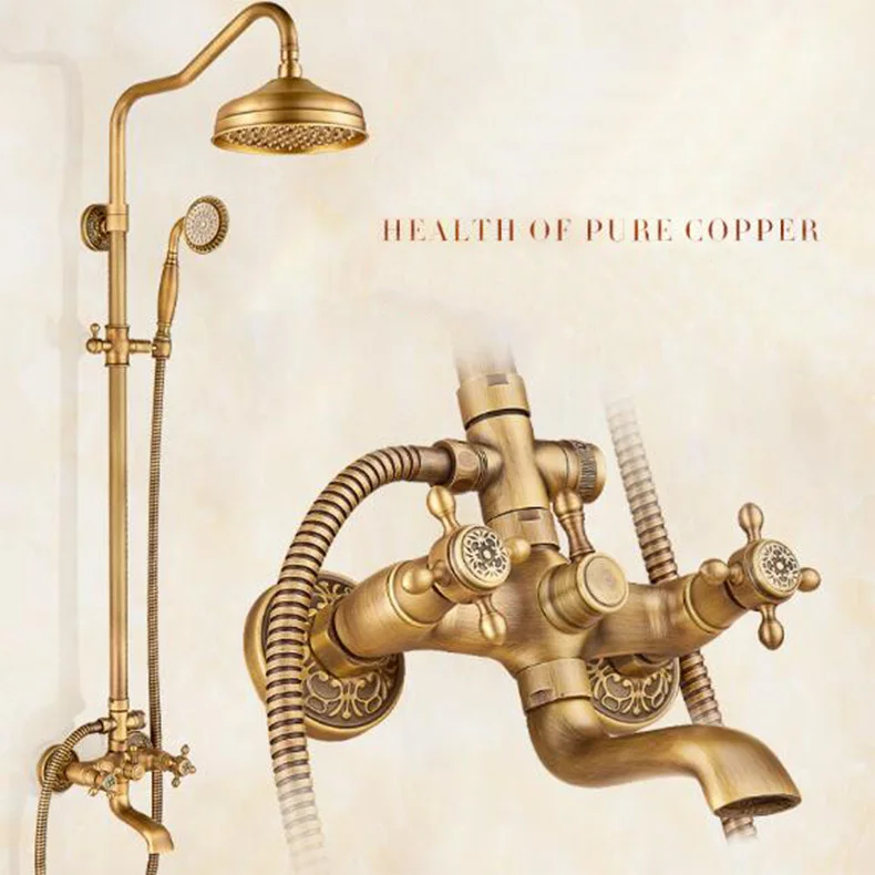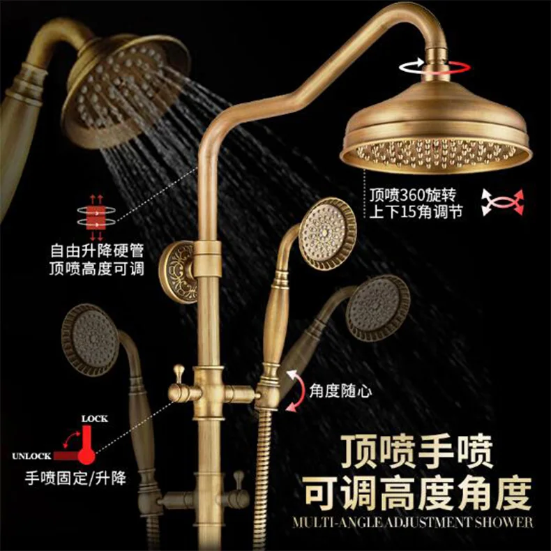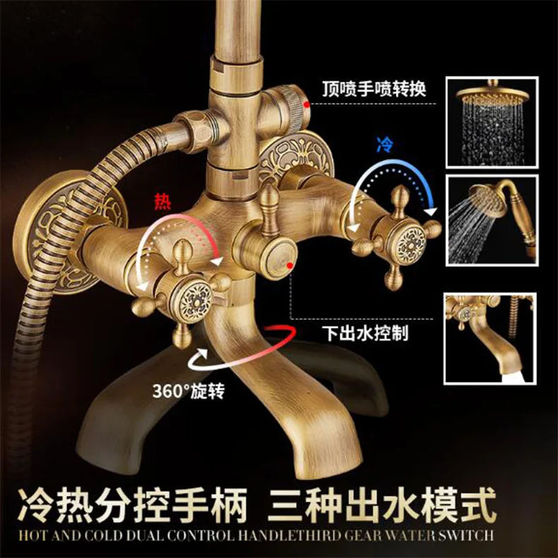 Product Name: New Luxury Antique Brass Carving Rainfall Shower Sets Faucet Mixer Tap Tub Faucet Brass Bath & Shower Faucet Set Bathtub Faucet