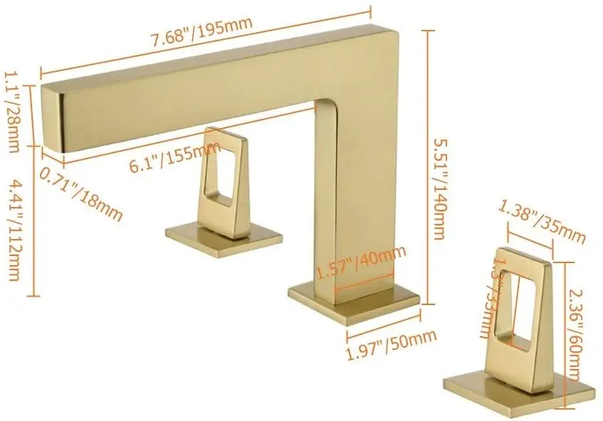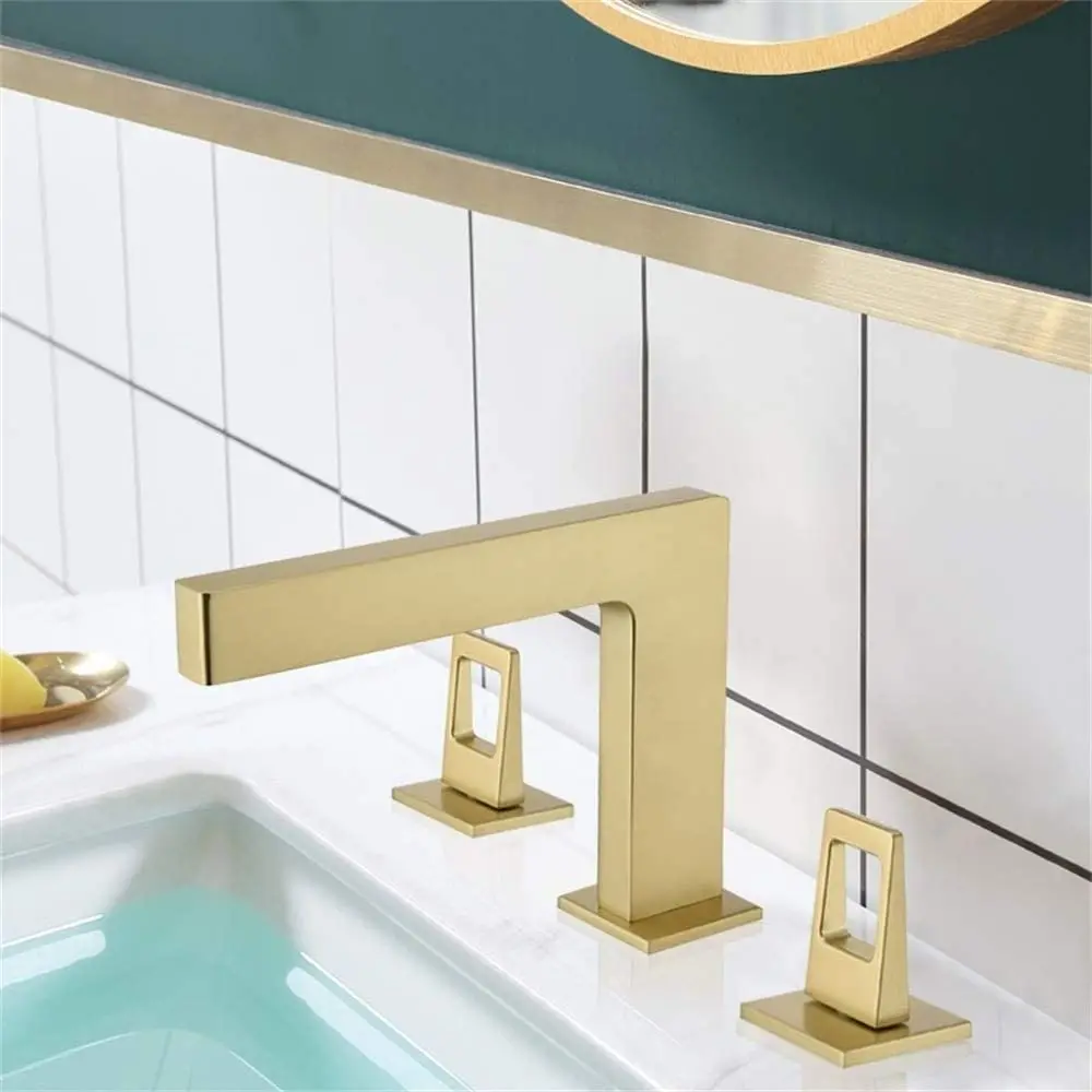 Product Name: Gold Modern Widespread Bathroom Sink Faucet In Brushed Gold 3 Hole 2 Handles Lavatory Faucet Basin Mixer Tap Solid Brass