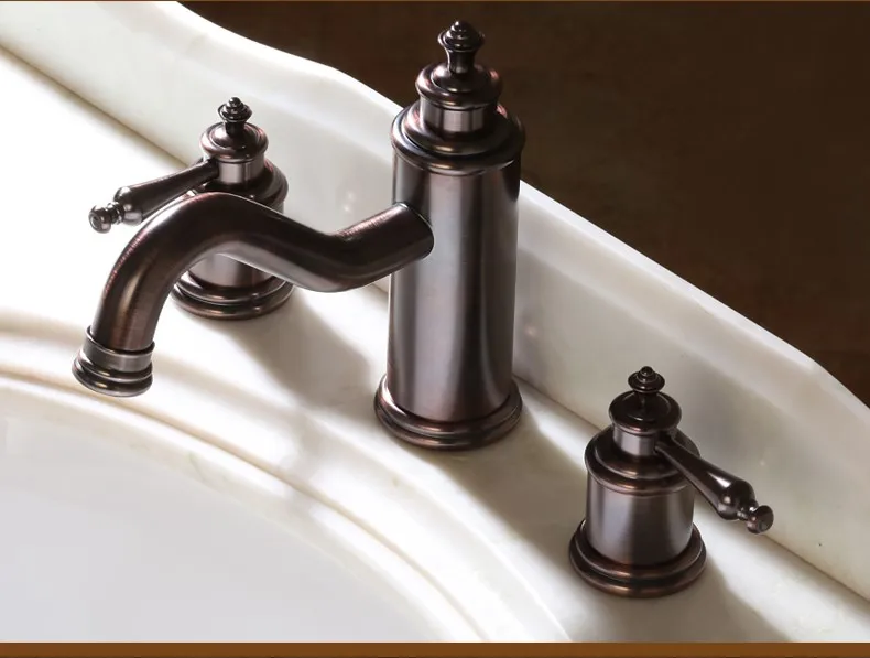 Product Name: Luxury Oil Rubbed Bronze Brass Double Handle Three Holes Widespread Bathroom Sink Faucet High Quality Basin Vanity Mixer Tap