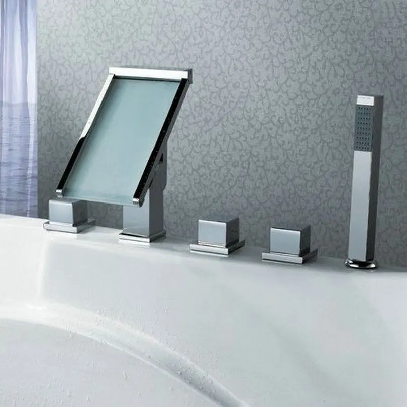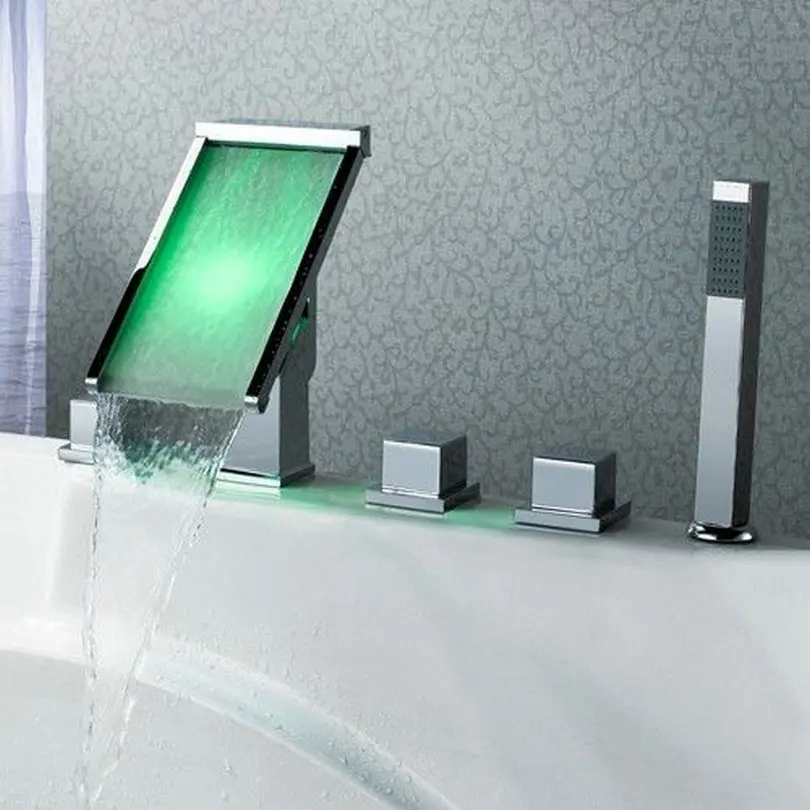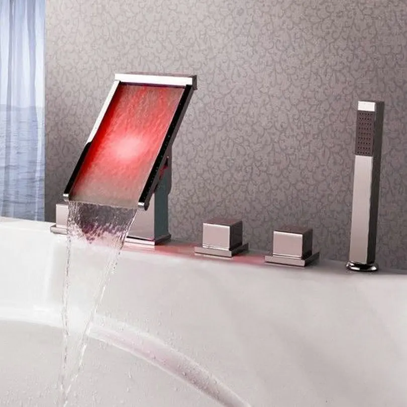 Product Name: Chrome Brass Bathroom Bathtub Basin Sink 5 Pcs Waterfall LED Spout Shower Faucet Solid Brass Chrome Polish 3 Handles Mixer Tap
