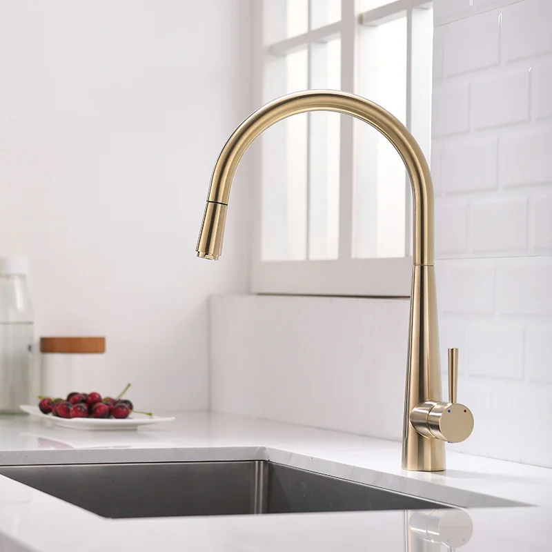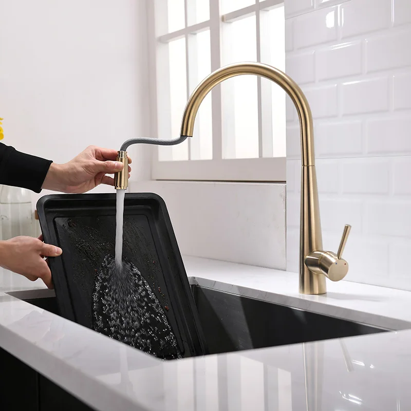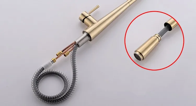 Product Name: High Quality Brushed Gold Brass Kitchen Faucet Pull Out Kitchen Sink Tap Cold Hot Water Faucet Rotatable