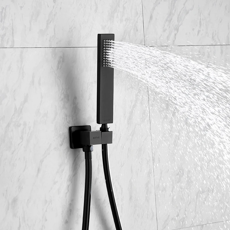 Product Name: MTTUZK Brass Matte Black Square Rain Shower Set 3 Function Shower Faucet Shower Arm Diverter Mixer Tap Handheld Spray Set