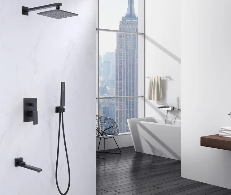 Best . (29% Off) Buy MTTUZK Brass Matte Black Square Rain Shower Set 3 Function Shower Faucet Shower Arm Diverter Mixer Tap Handheld Spray Set Price Online.