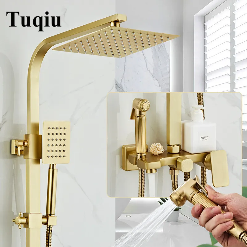 Product Name: Vidric Bath And Shower Faucets Brushed Gold Shower Set Faucet Tub Mixer Tap Hand Held Shower Wall Mounted Rainfall Bath Crane Sh